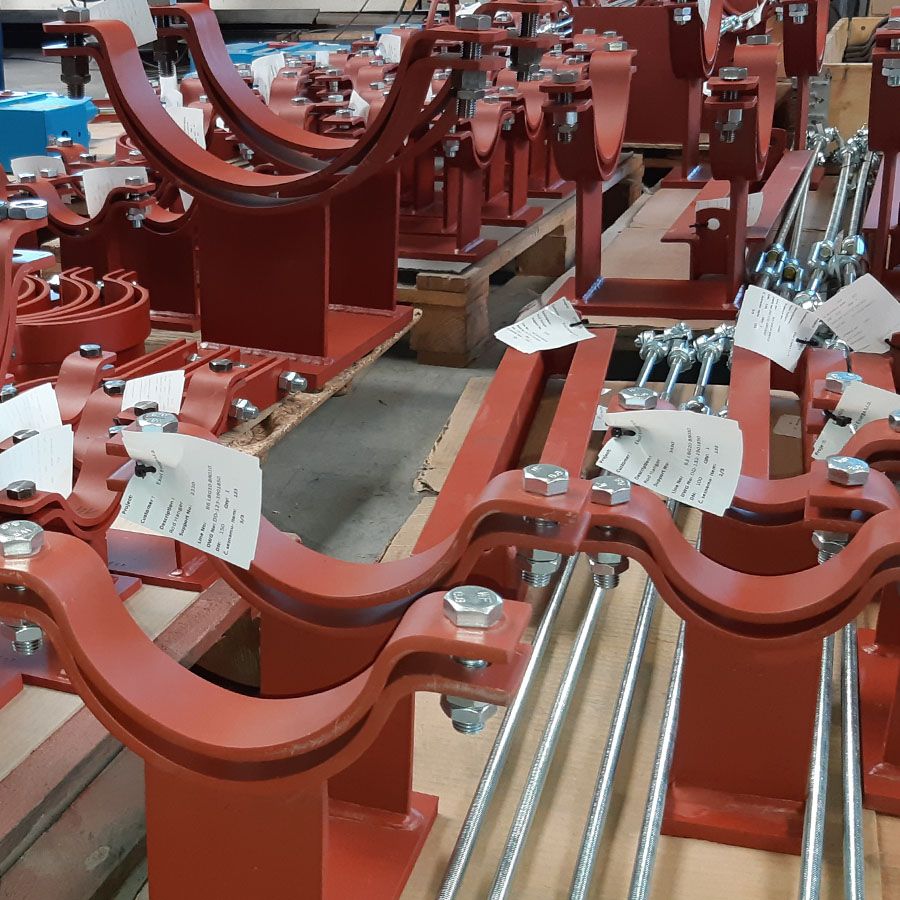 Production and delivery of pipeline supports for machine room of Etihad Food Industries Co. Ltd. production in Iraq was divided into two stages. In total there were almost 4 tons of supports and pipe hangers.